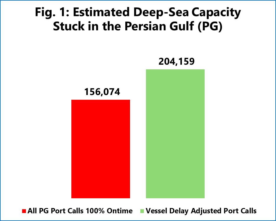Furthermore, since the Persian Gulf is a net-import region, these deep-sea services usually carry empty containers back to Asian manufacturing hubs. Simultaneously trapping over 200,000 TEU of capacity starves Asian export hubs of vital equipment, which could cause container shortages in the Far East.