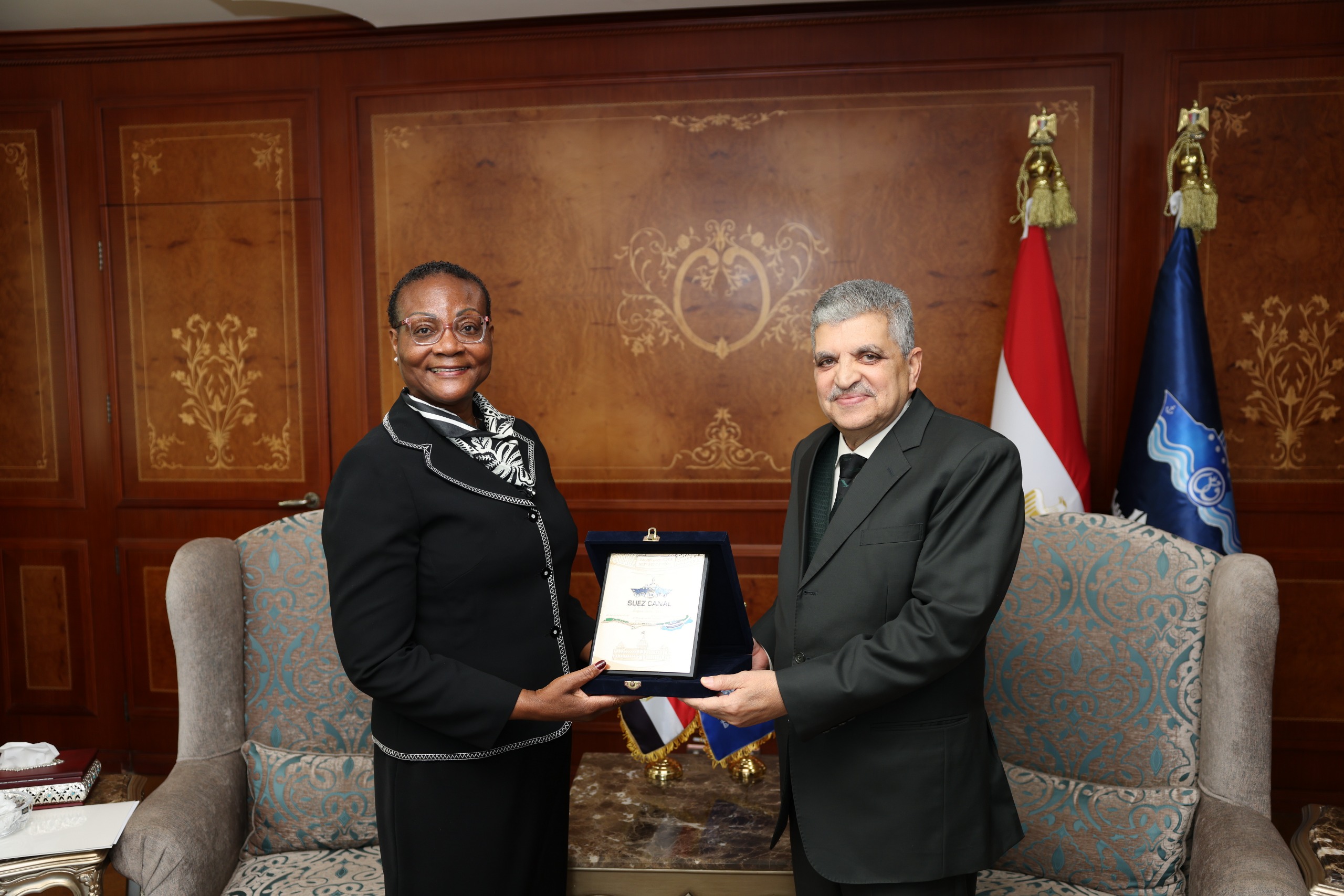 On the other hand Ms. Nanjiola Hamionela, Chairperson of the Namibian Ports Authority, expressed her eagerness to cooperate with the Suez Canal Authority in implementing the ambitious development plan for Namibia's ports, which are the largest in West Africa. She emphasized that this cooperation reflects the strength of relations between Egypt and Namibia and will contribute to strengthening bilateral ties.